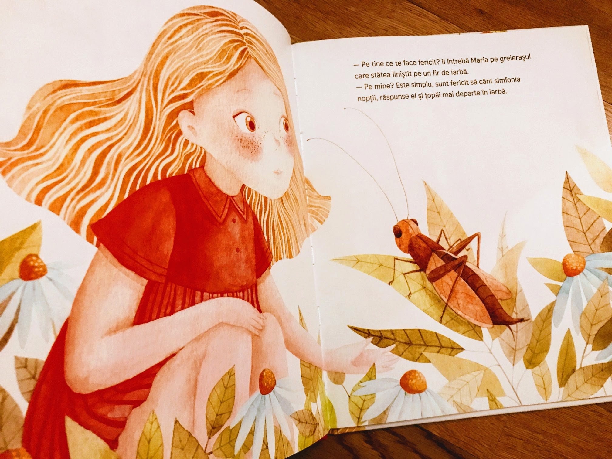 O fetiță curioasă întreabă animalele din jurul ei, insectele, florile care-i secretul fericirii lor.