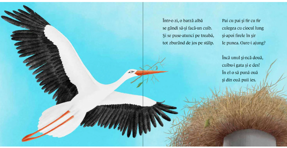 Mama Barză lucrează de zor, construiește un cuib încăpător