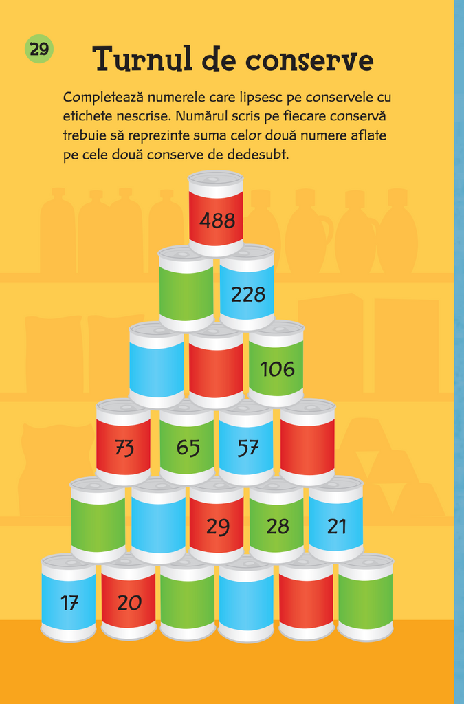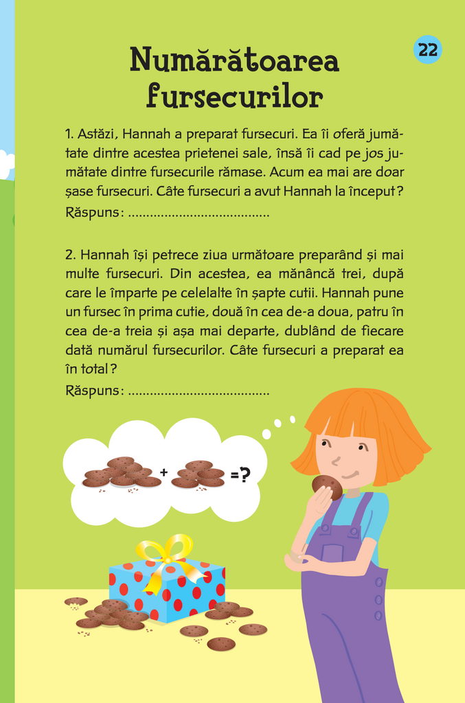 Vei găsi în această carte o mulțime de jocuri care îți vor pune în valoare cunoștințele acumulate și agerimea minții. Răspunde provocărilor și află cum își împarte comoara piratul Jim sau cine câștigă concursul de jocuri video. După ce ai rezolvat problemele, poți verifica în paginile de la sfârșitul cărții dacă ai răspuns corect. Mult succes!
