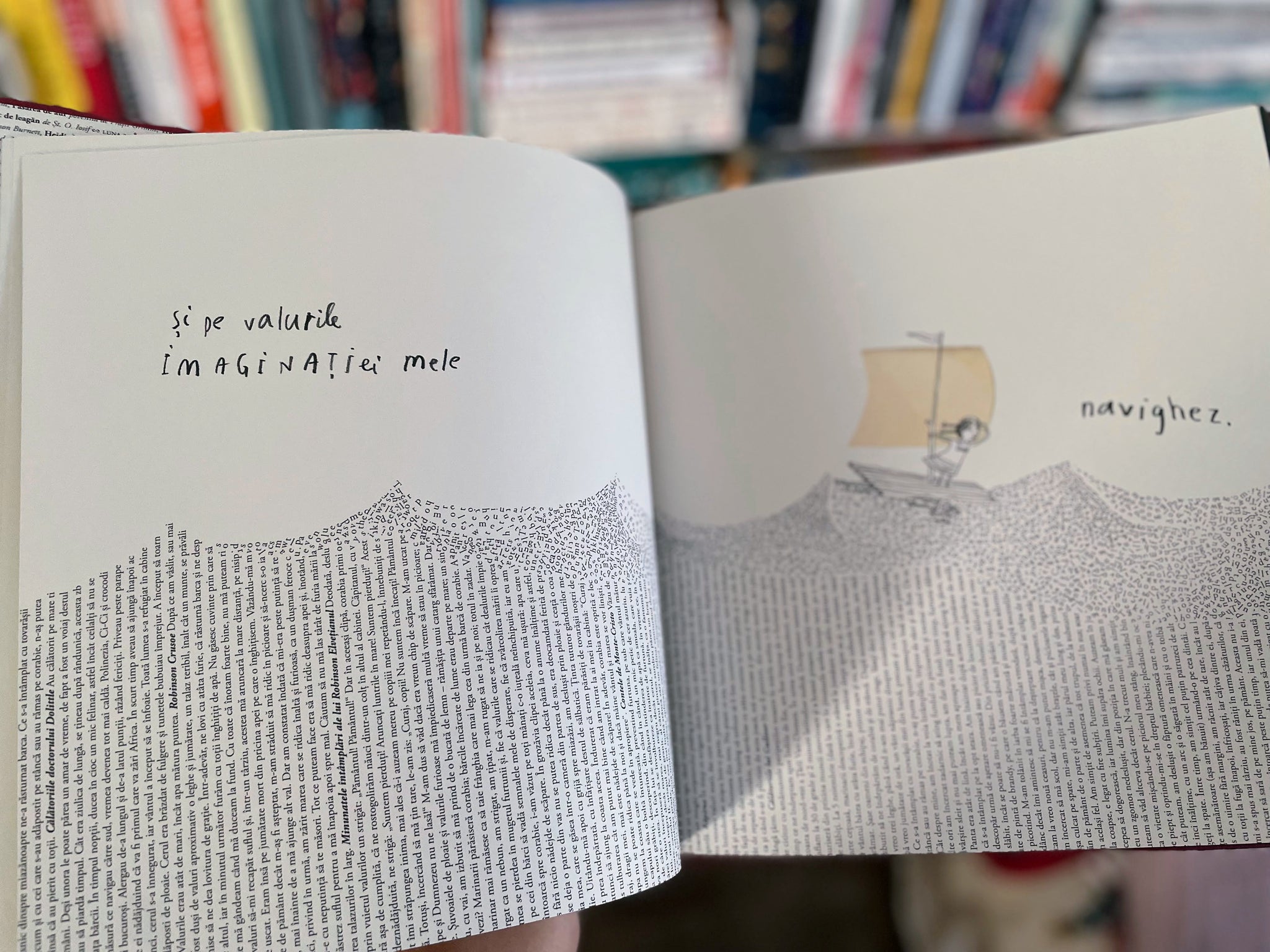O fetiță, un copil din cărți, pornește într-o călătorie pe o mare de cuvinte și ajunge la casa unui băiețel. Îl invită să o însoțească într-o aventură în lumea poveștilor… unde, cu doar un strop de imaginație, orice se poate întâmpla.