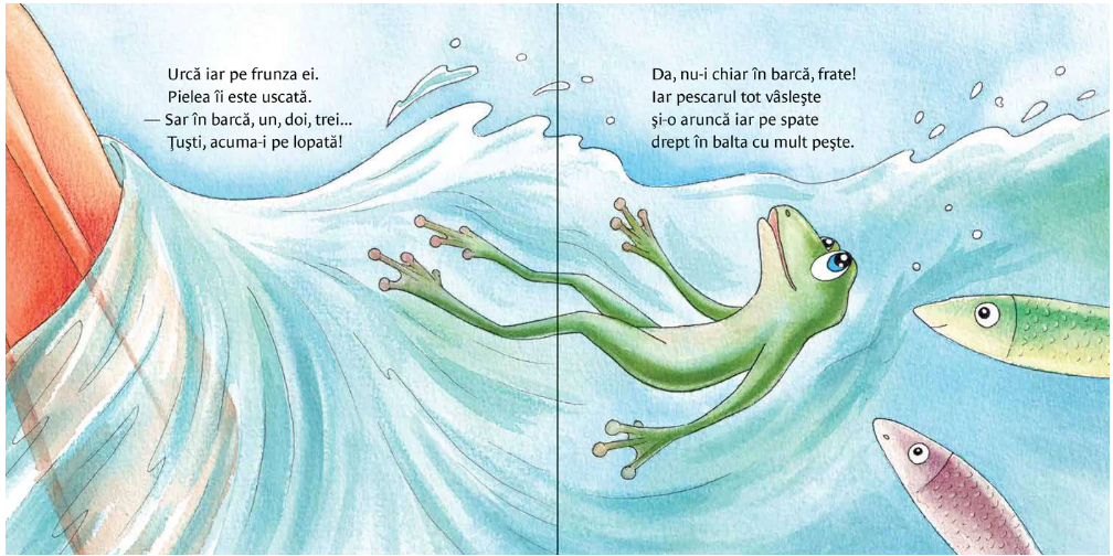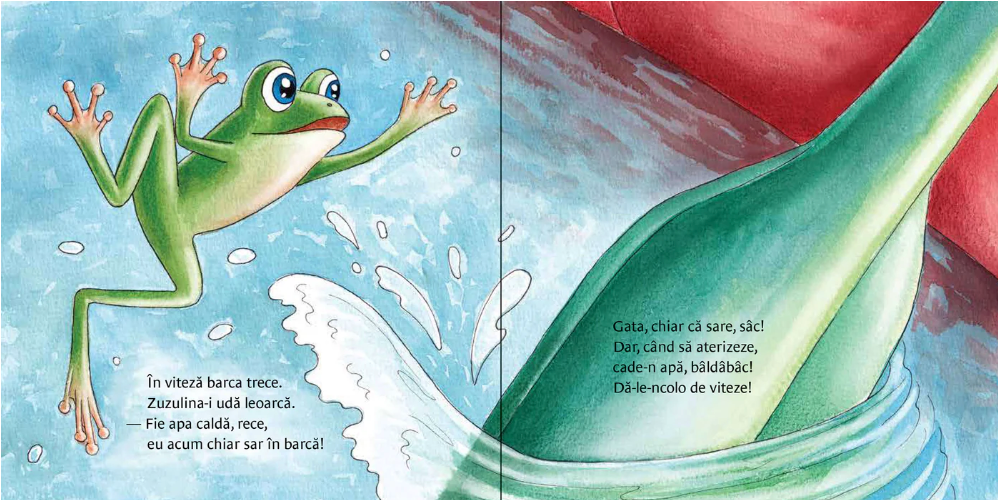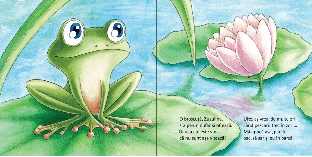 Broscuța Zuzulina se uită cu jind, de pe frunza ei de nufăr, la bărcile care trec.