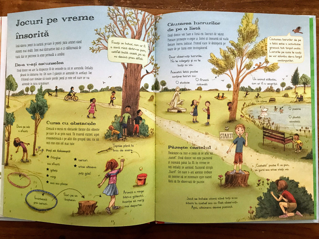 Această carte îți oferă o mulțime de idei! Cum să te porți și să te distrezi în zilele în care faci o excursie în natură, fie la pădure, fie pe țărmul mării. Cum să faci un foc de tabără și cum să organizezi jocuri în aer liber. Cum să iei urma animalelor sălbatice și cum să prinzi insecte. Cum să descoperi natura ca un adevărat explorator!