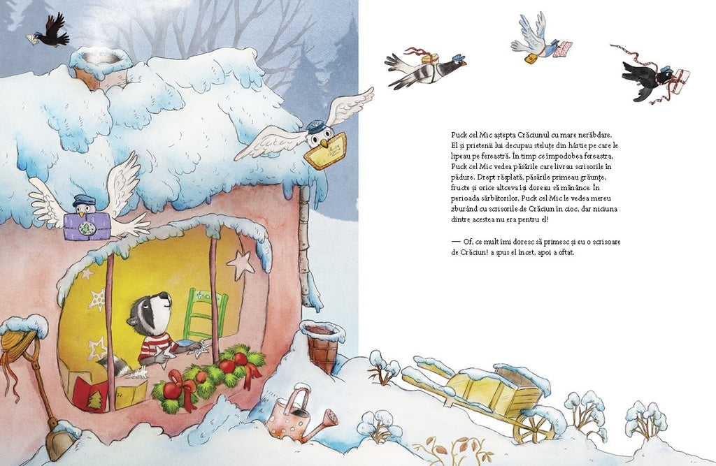 Mai sunt câteva zile până la Crăciun, iar păsările din pădure sunt ocupate să livreze toate scrisorile și felicitările de Crăciun. Micul raton Puck cel Mic le privește cu nostalgie. Nu-și dorește nimic altceva decât să primească și el o scrisoare. La rândul ei, pitulicea are o dorință mare: să livreze cuiva o scrisoare adevărată! Dar celelalte animale consideră că e prea mică și nu are putere să ducă la bun sfârșit asemenea sarcină dificilă.