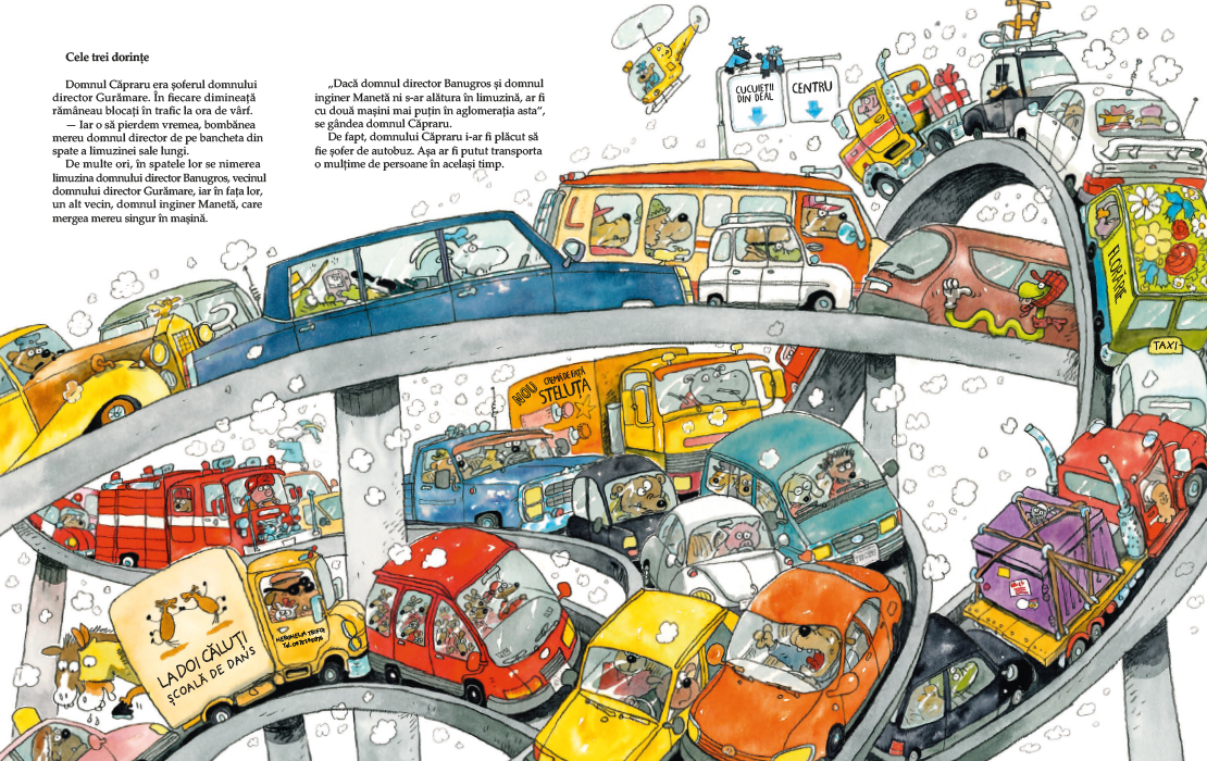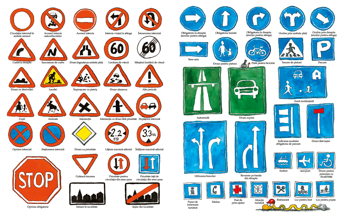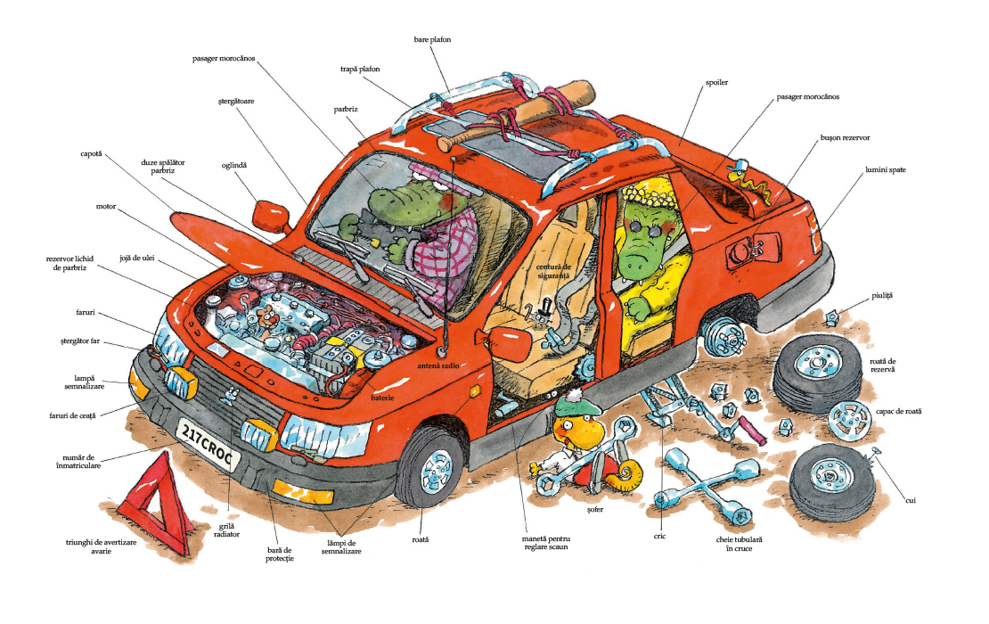 Cartea este completată de o schemă amuzantă (Mauri Kunnas e pus mereu pe joacă) și foarte detaliată cu principalele componente ale unei mașini. Iar la final, autorul a inclus două planșe foarte utile cu cele mai importante semne de circulație.