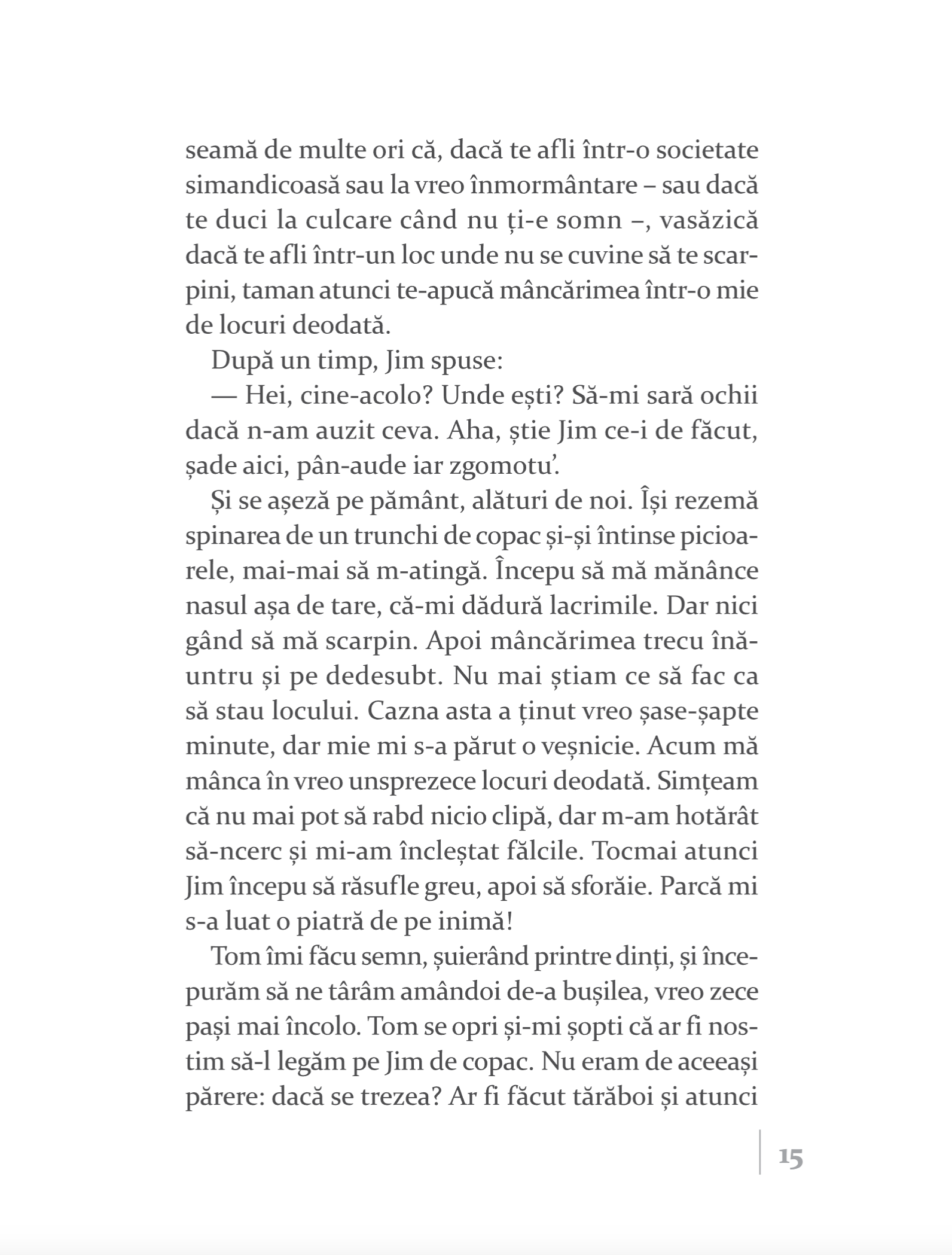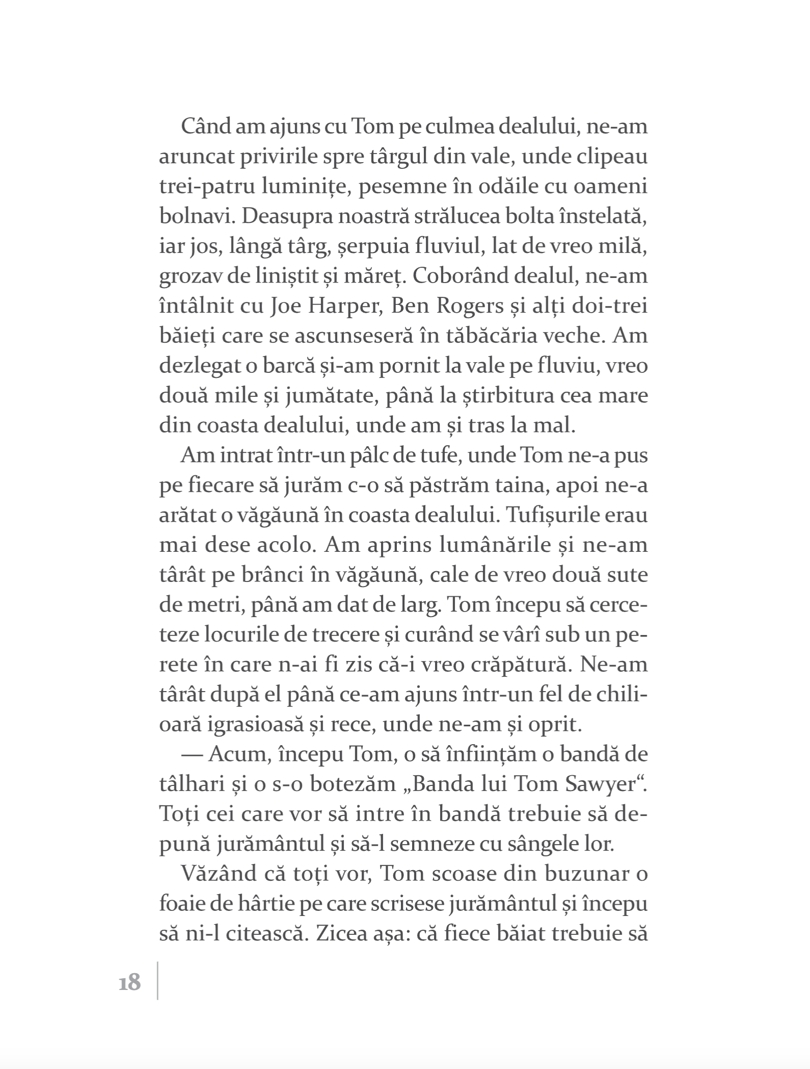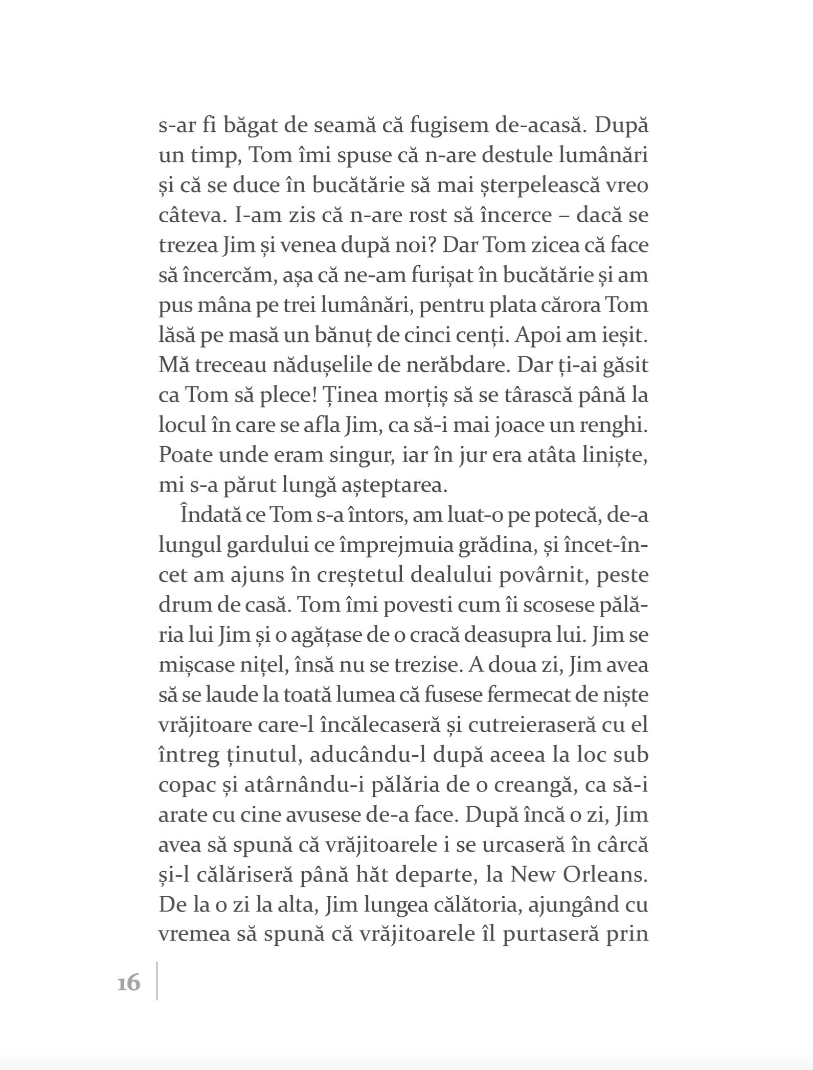 Aşa începe o călătorie fabuloasă la capătul căreia cei trei eroi, Huck, inimosul Jim şi ştrengarul Tom, vor descoperi ce înseamnă libertatea, curajul şi prietenia.