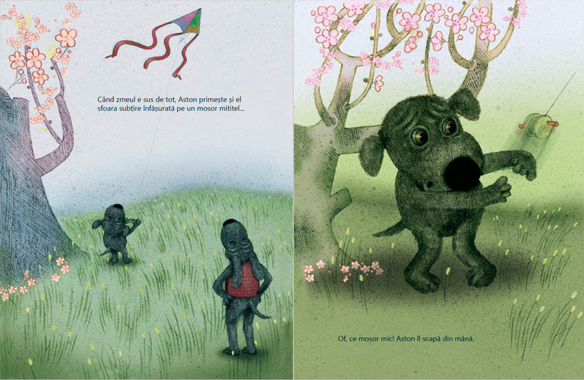 Oare ce mai face Aston? Sigur a mai crescut puțin de la povestea cu pietrele. Nu mai aduce acasă toți bolovanii care stau singuri afară, în frig, și toate bețele rătăcite prin iarbă pentru că i-a venit o idee și mai interesantă. Aston face cadouri. Multe.