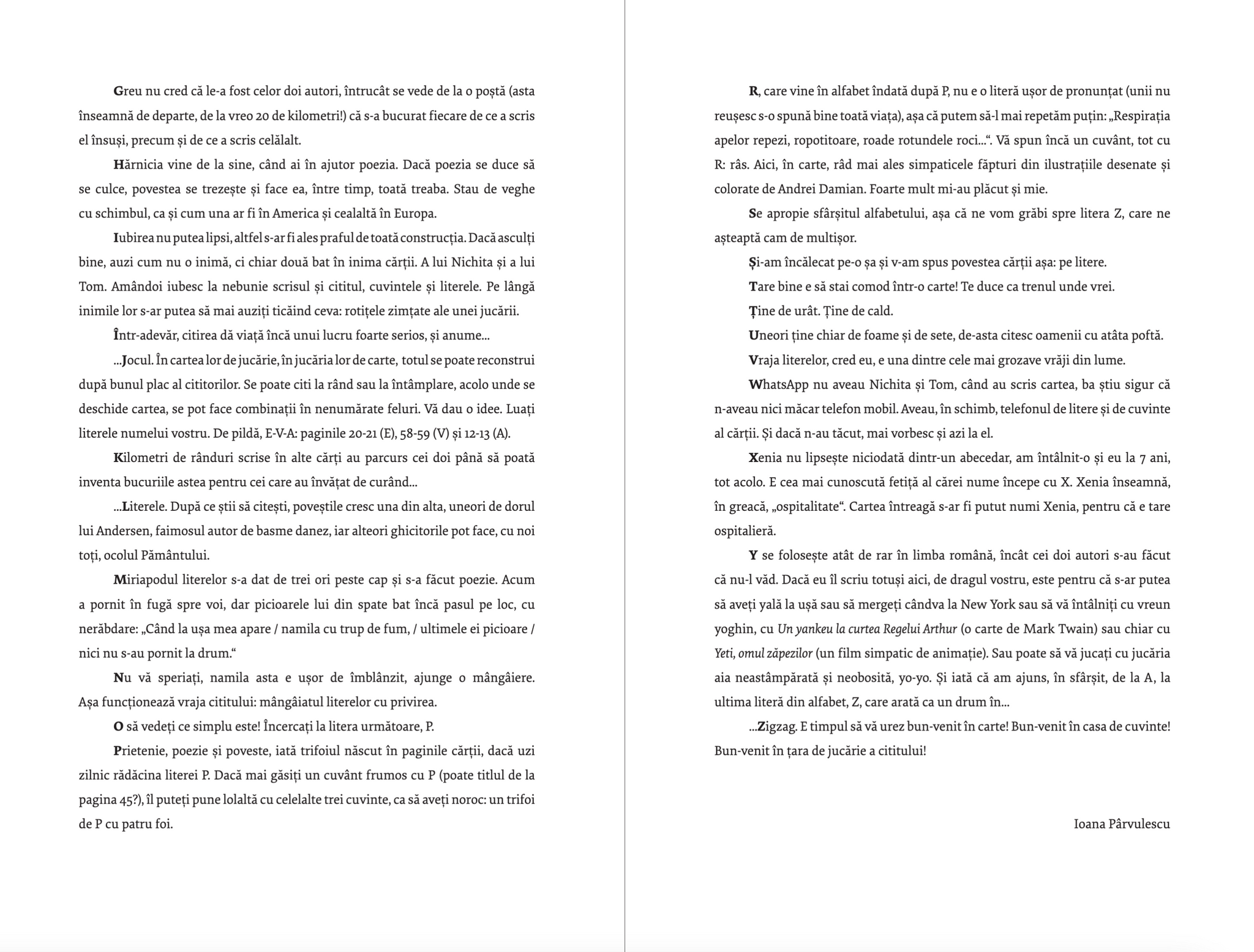 Carte de citire, carte de iubire nu înlocuieste Abecedarul și e mai mult o carte de iubire mărturisind credința autorilor că scriind pentru și despre copii și copilarie ei își continuă o fericită vârstă de mirări şi încântări, de poezie şi vis..."