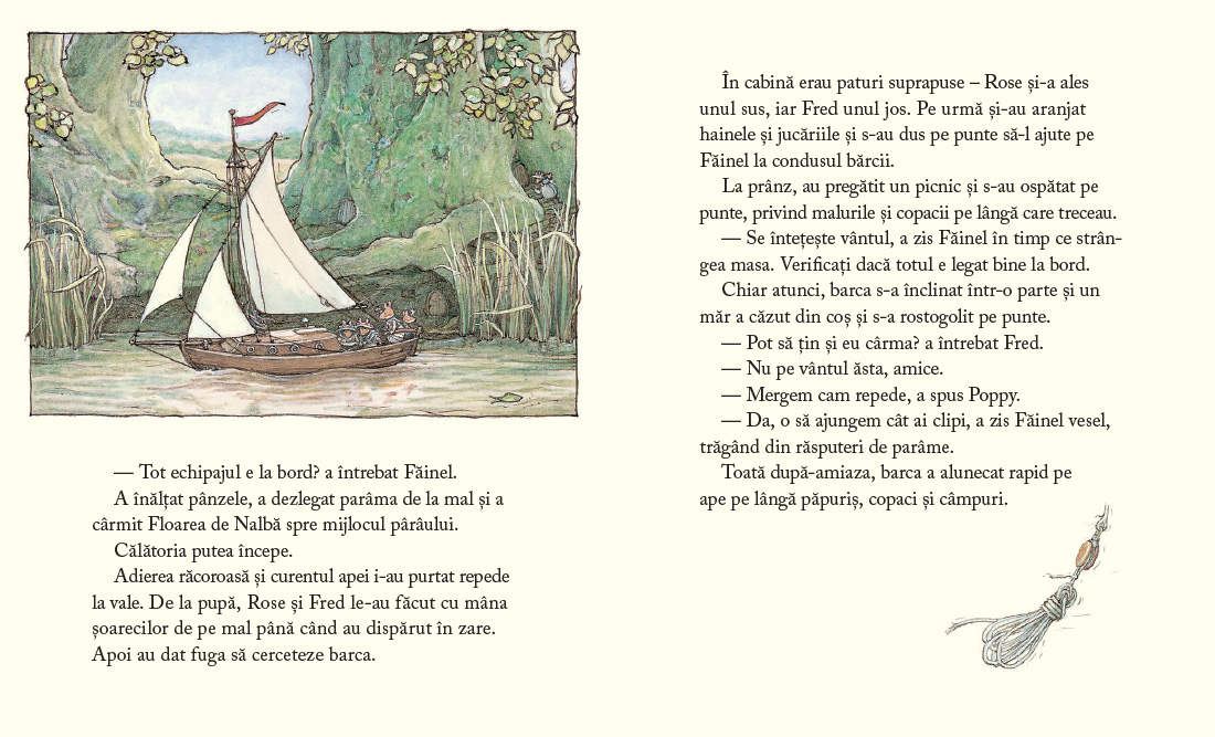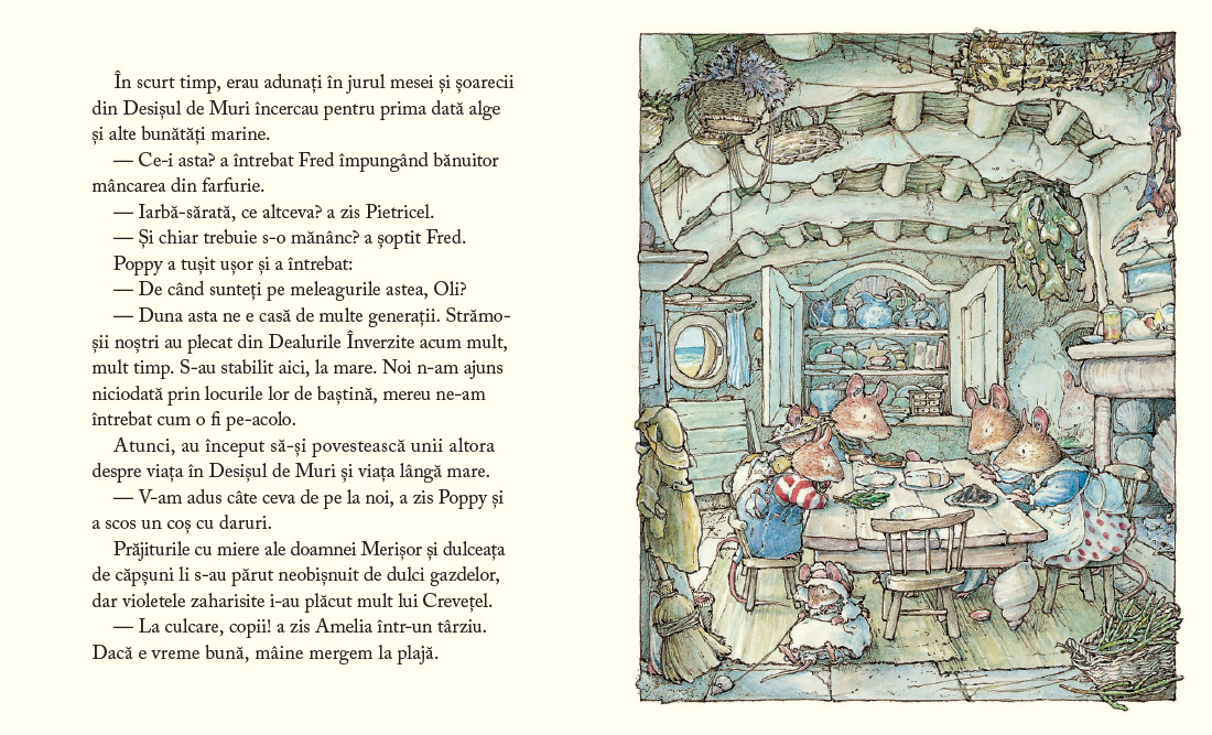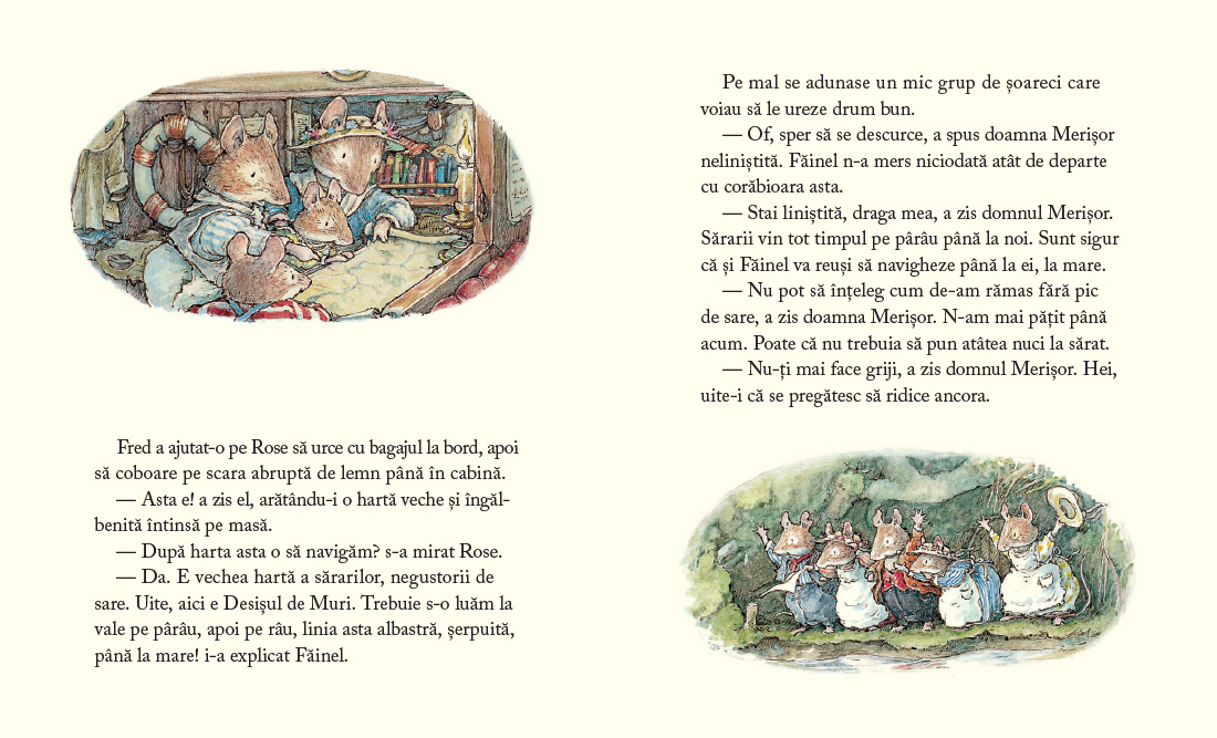 Șoriceii din Desișul de Muri au rămas fără sare, de care au mare nevoie pentru multe dintre proviziile pe care le pregătesc pentru iarnă. Sarea se găsește la sărari, șoriceii care o extrag din apa de mare. Aceștia locuiesc chiar pe malul mării și, ca să ajungă la ei, câțiva șoricei din Desiș trebuie să meargă pe râu la vale, un prilej minunat pentru o aventură de vară cu barca. Șoriceii din Desișul de Muri nu vor uita niciodată valurile, nisipul, scoicile și mai ales noii prieteni pe care și i-au făcut printre șoriceii de pe țărm.