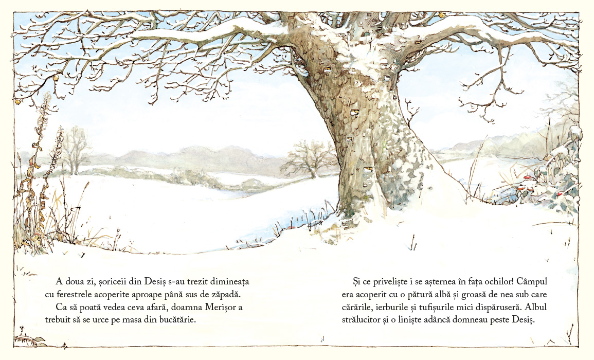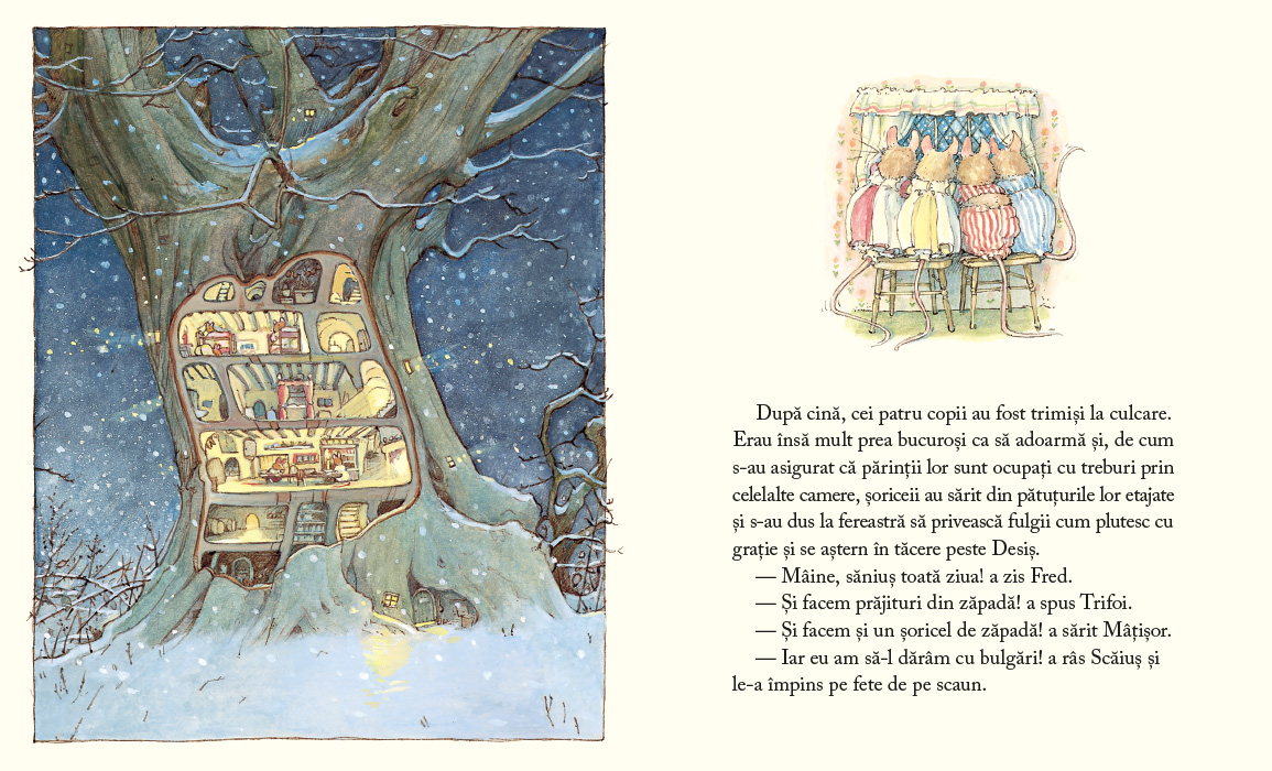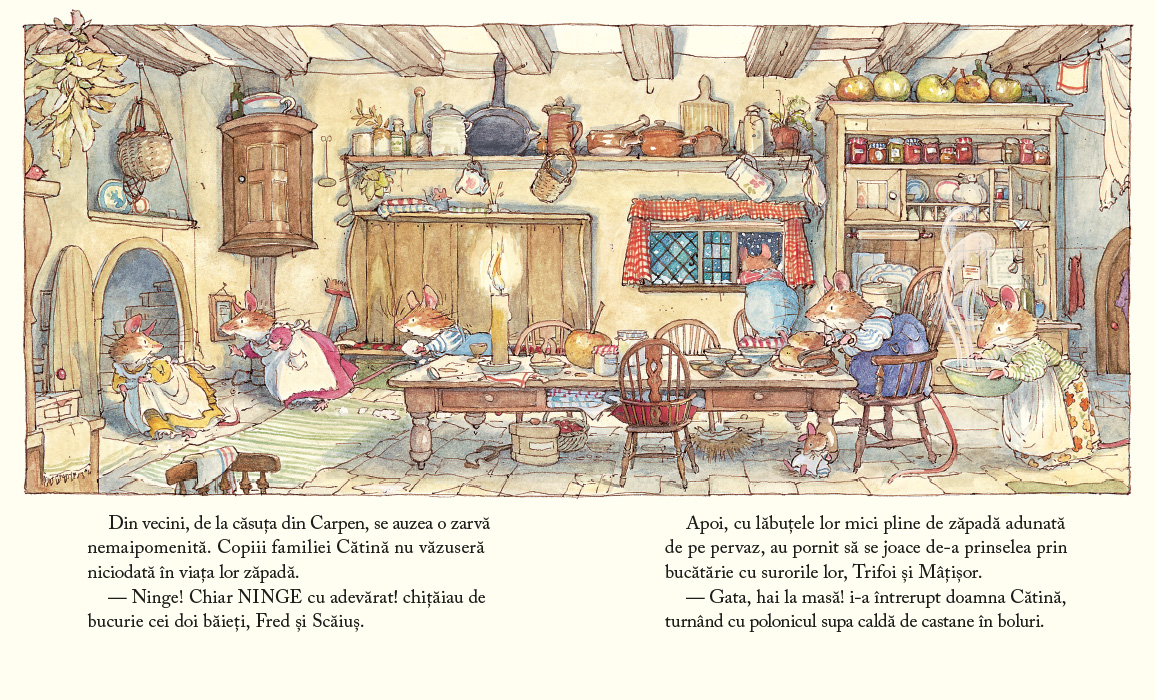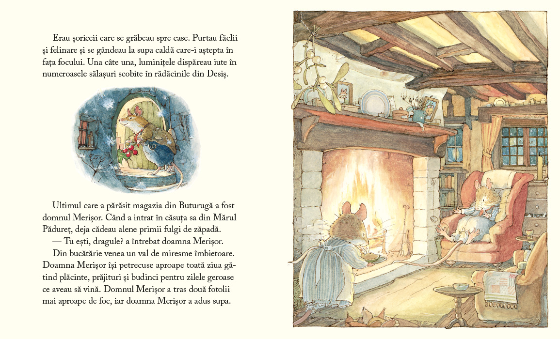 „Poveste de iarnă“ este al patrulea volum din seria „Desișul de Muri“ (Brambly Hedge), publicată acum în traducerea poetei Mara Wagner.