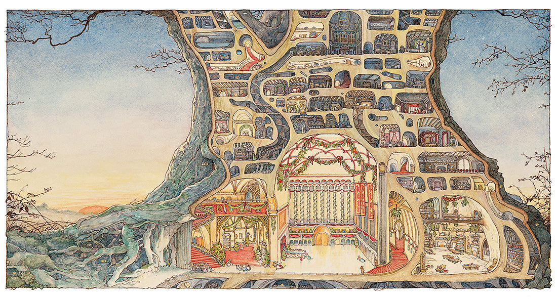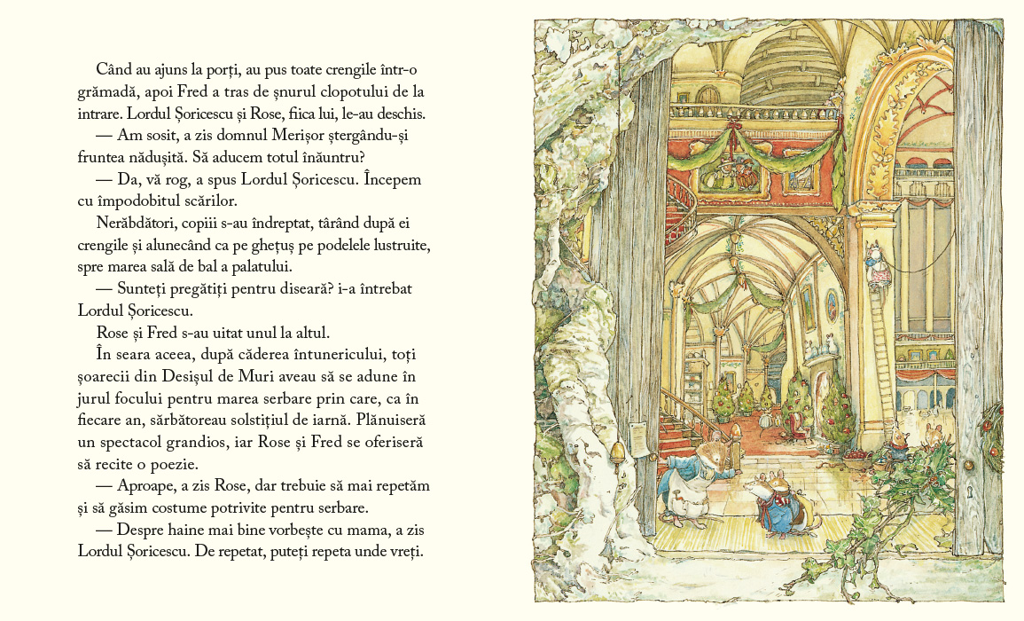 În Desișul de Muri, miezul iernii e o dată însemnată, ca în multe alte locuri din lume. Șoriceii știu că de acum, de la solstițiu, chiar dacă iarna e încă puternică, zilele încep să crească și nopțile să scadă. E primul semn al luminii și căldurii care se vor întoarce curând, deci un prilej minunat pentru (încă) o petrecere. În vârtejul pregătirilor, micuții Rose și Fred descoperă în Palatul din Bătrânul Stejar o uimitoare scară secretă. Oare unde duce?