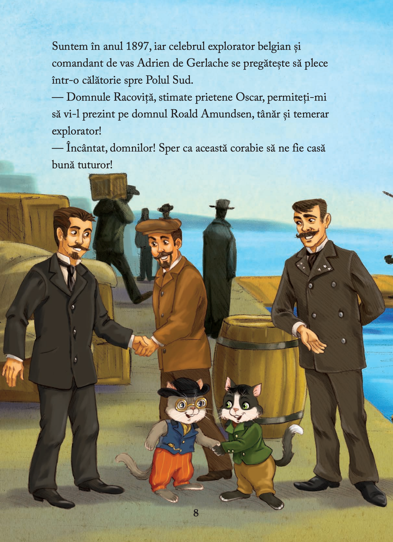 Suntem în jurul anului 1900. Gândește-te la 19 membri ai unui echipaj pornit să exploreze Polul Sud. Este vorba despre oameni de știință renumiți, ofițeri și navigatori, plus doi motani curioși.