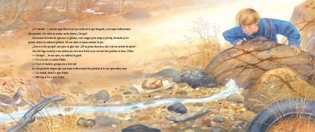 Pe la sfârșitul iernii, un băiat, Matt, descoperă un firicel de apă care izvorăște dintr-o groapă din pădure. Când se uită mai atent, își dă seama că groapa a fost cândva un mic iaz care a secat. Dar acum, uite, revine la viață! Și are nevoie de puțin ajutor.