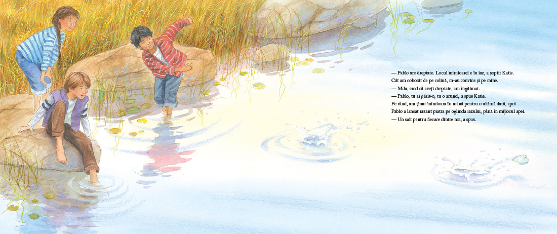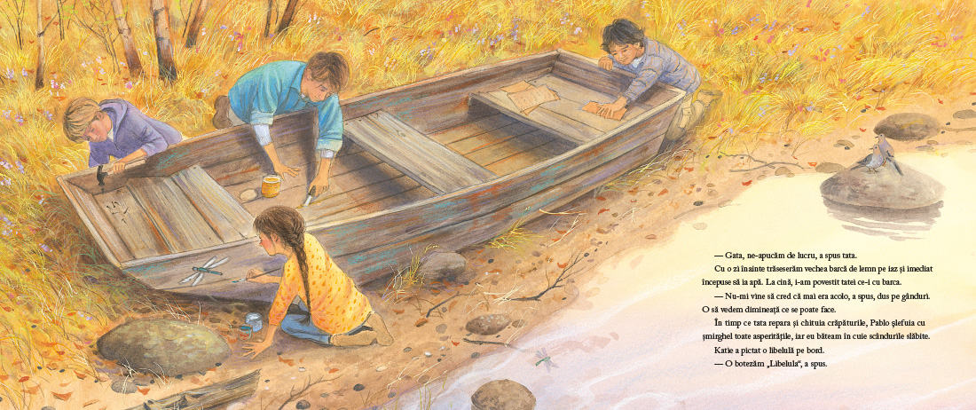 Vara a trecut mult prea repede. În ultima săptămână dinaintea școlii, tata ne-a văzut cam pleoștiți. „Ce vă trebuie vouă e o serbare în cinstea verii“, ne-a spus. „De ani de zile n-am mai folosit echipamentul ăsta“, a continuat el în timp ce scotea din garaj cortul și sacii de dormit. Pe malul iazului am mâncat hotdogi, am băut cacao și am cântat cântece de tabără de pe vremuri. Katie s-a lansat în ceea ce ea numea dansul libelulei. Am rămas treji mult după căderea întunericului și ne-am uitat cum răsar milioane de stele.