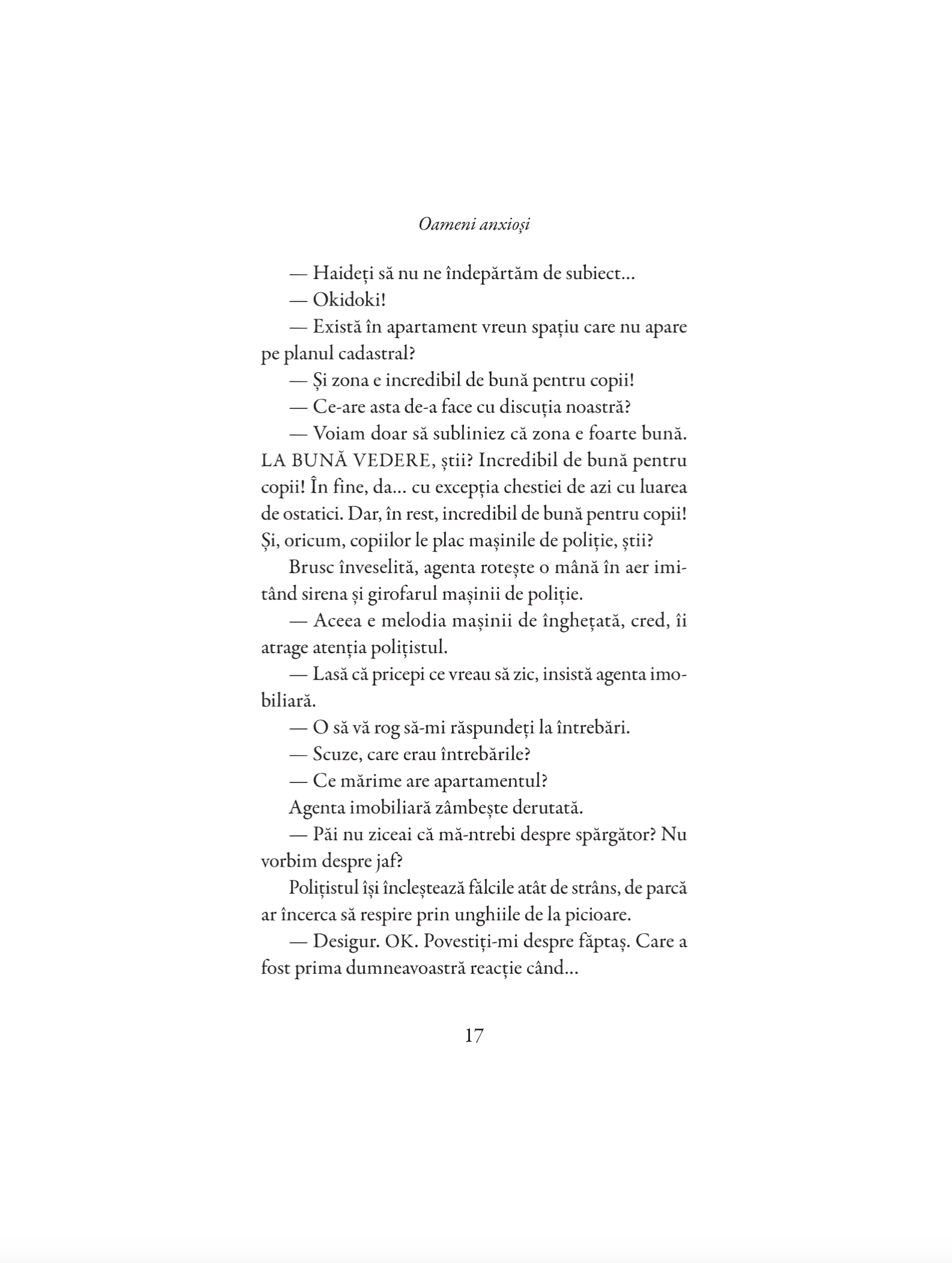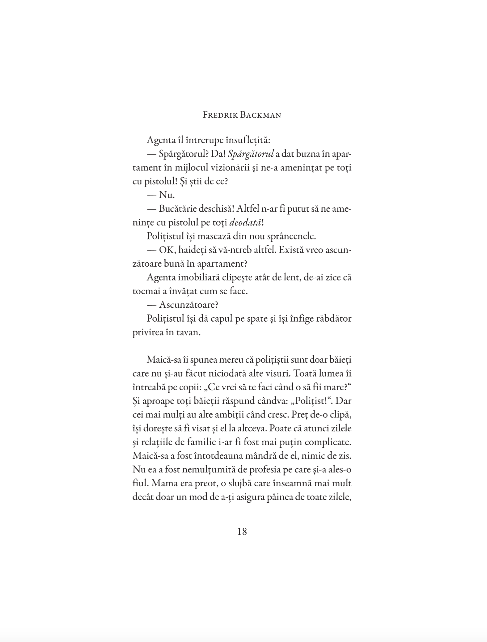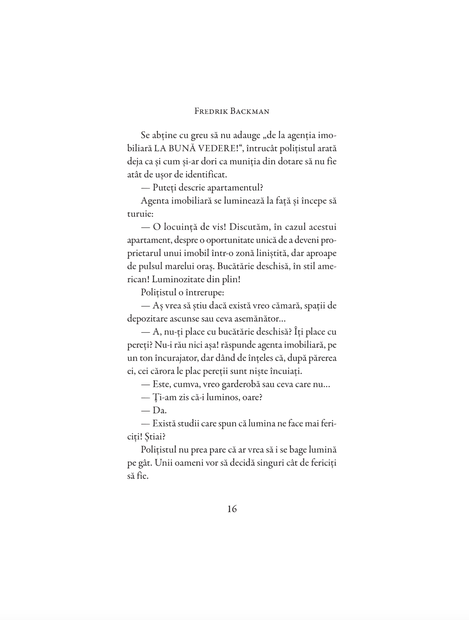 „Cartea lui Backman spune o poveste despre cum un eveniment comun poate schimba cursul existenței mai multor oameni, chiar și în momente de anxietate profundă. Un roman deopotrivă amuzant și sfâșietor, care neîndoielnic le va plăcea fanilor lui Backman.” Kirkus Review