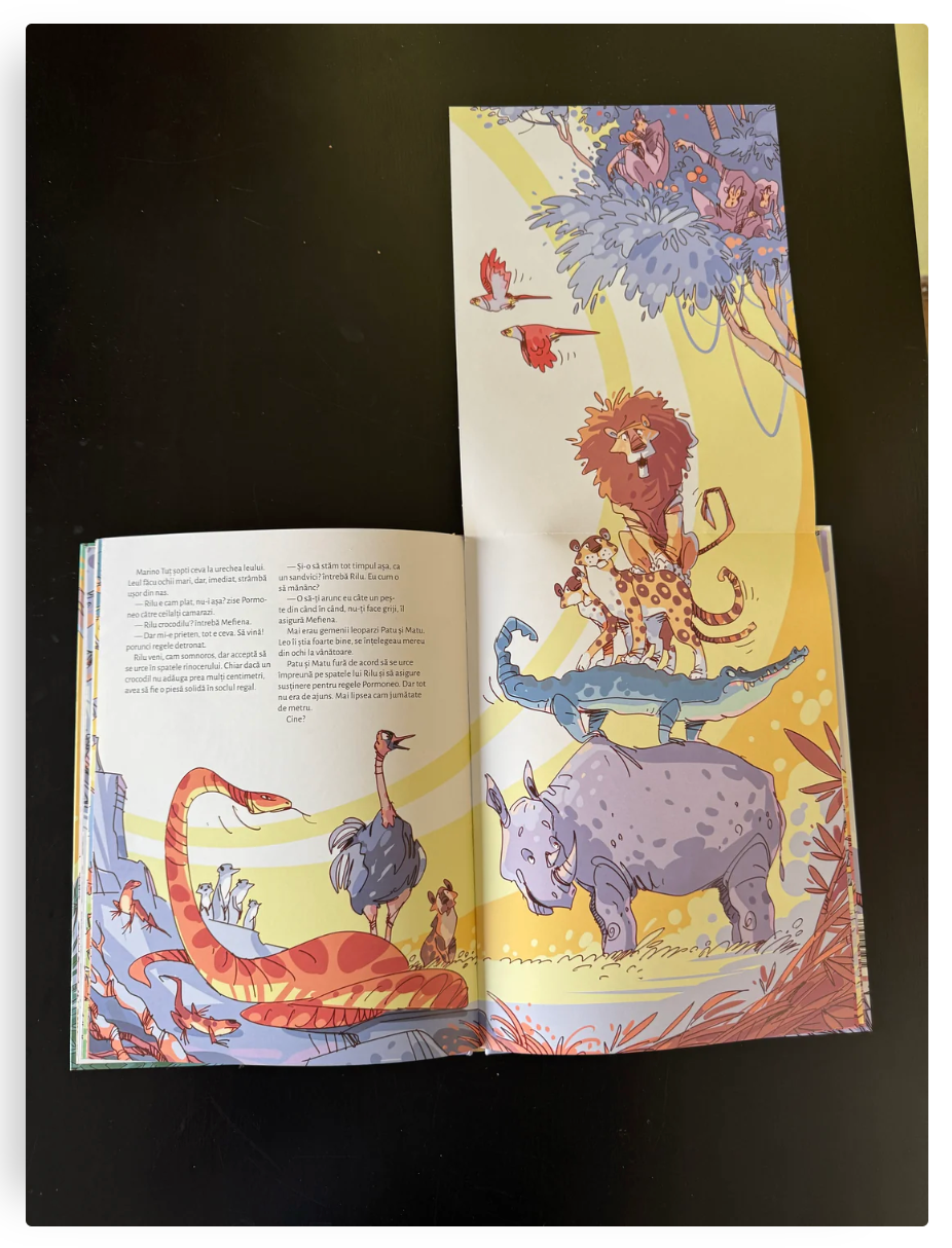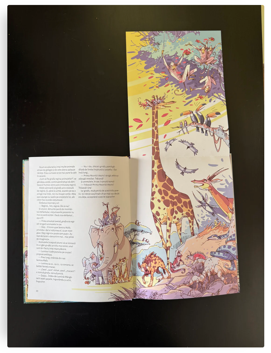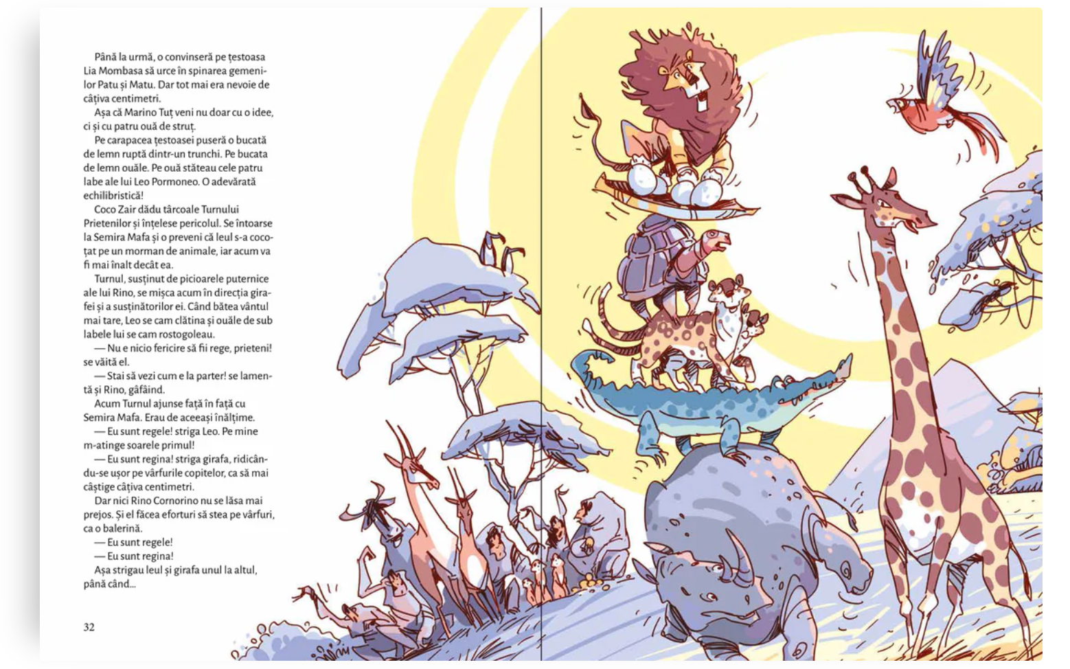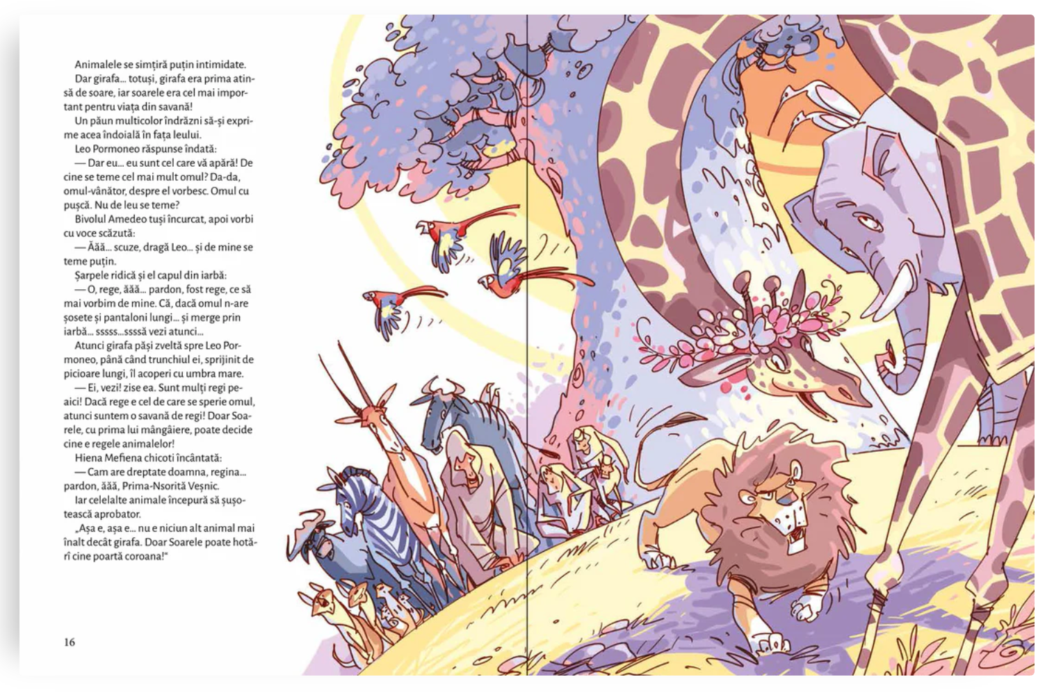 În regatul animalelor din savană e mare tulburare. Girafa s-a răzvrătit împotriva Regelui, leul, și s-a declarat Regină! A adus un argument foarte bun ca să fie acceptată de toate animalele, iar acum leul e în încurcătură. Oare cine e mai potrivit să domnească, Regele Leu sau Regina Girafă? Se aplică oare și de data asta proverbul când doi se ceartă, al treilea câștigă?
