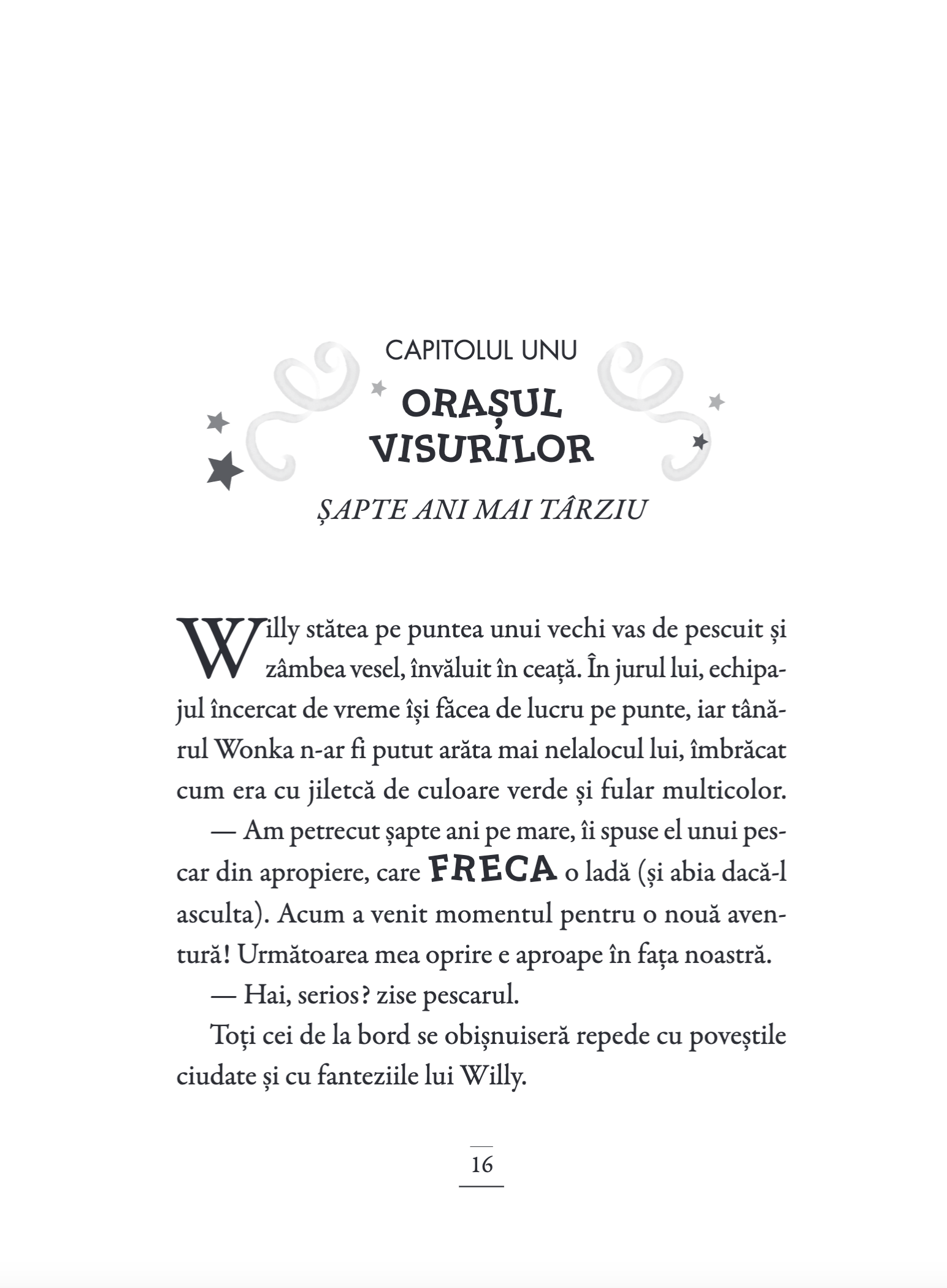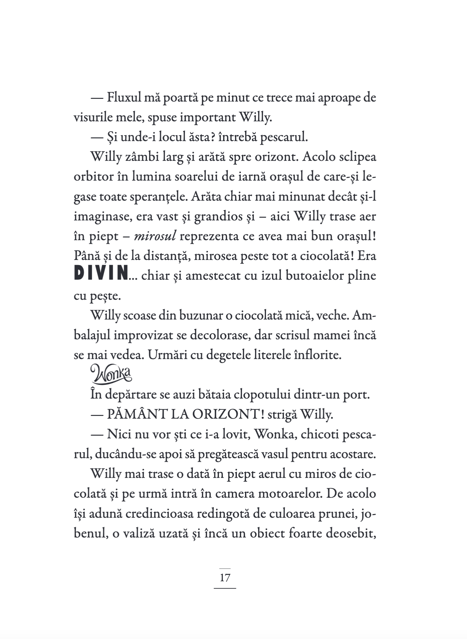 Această savuroasă aventură doldora de visuri, prietenie și ciocolată are la bază filmul Wonka, regizat de Paul King, care a creat povestea şi a scris scenariul împreună cu Simon Farnaby. Povestea a fost transformată în carte de Sibéal Pounder, autoare a mai multor bestsellere.