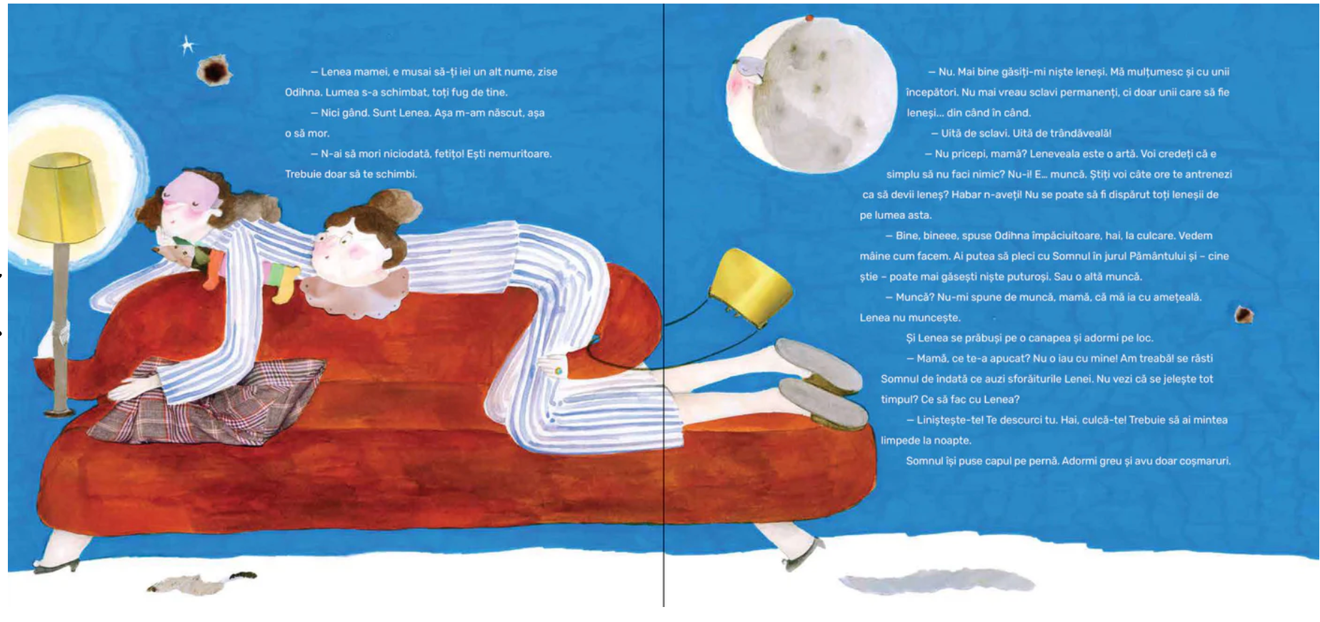 Lenea, fiica Odihnei și sora Somnului, e tare oropsită. Oamenii au bârfit-o mereu și nu au înțeles că are și ea un rost pe lume, dar de data asta au întrecut măsura! Nu mai știu să lenevească. Muncesc toți ca apucații, nu se știe de ce! Fratele Somn se îndură de ea și o ajută, o lasă să-i ia în stăpânire pe Bâzdâc, pisica, și pe cei trei pisoiași ai ei. Dar Lenea e lacomă și o atacă până și pe bunica Maia… Nepoții ei, Alex și Ana, trebuie să o alunge, Lenea nu poate rămâne la ei acasă! Dar unde să o trimită? Care e rostul ei pe lume?!